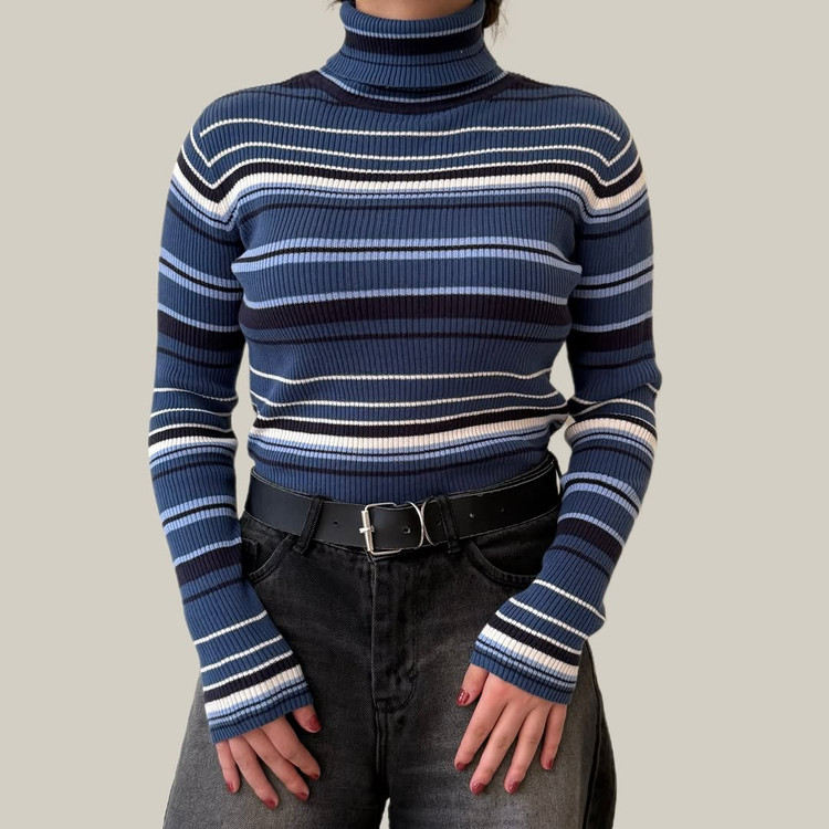 بافت یقهاسکی راهراه آبی اورجینال چین